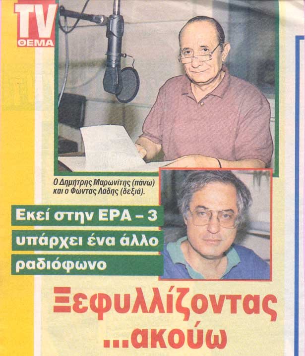 «Ξεφυλλίζοντας… ακούω» είναι μια ζώνη του Τρίτου Προγράμματος που ξεκίνησε τον Απρίλιο. Εμπνευστής της ο διευθυντής της ΕΡΑ-3, Γιώργος Τσαγγάρης. Ο λόγος; «Στο Τρίτο Πρόγραμμα δεν πιστεύουμε ότι η έννοια ενημέρωση είναι μονάχα οι πολιτικές ειδήσεις. Γίνεται μια προσπάθεια προσέγγισης αυτής που θα λέγαμε ιδανικής ενημέρωσης», λέει ο ίδιος.